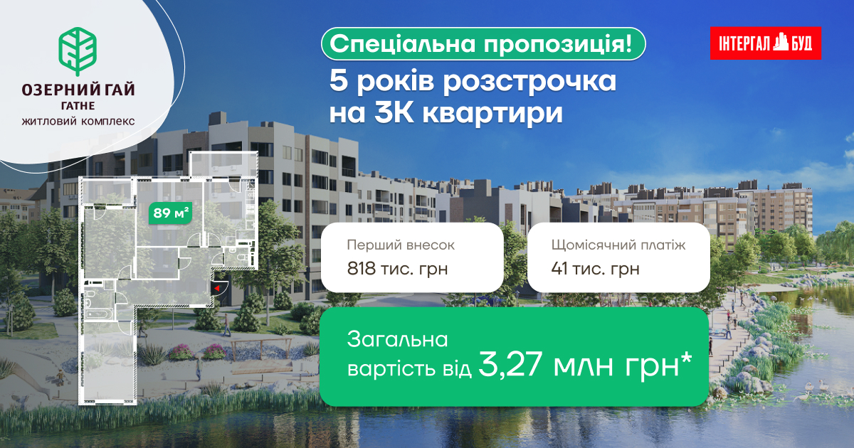 «Озерный гай Гатное» предлагает специальную рассрочку на трехкомнатные квартиры – до 5 лет